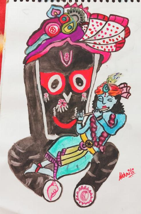 This is a painting of lord jagannath, the most devoted god of Odisha and lord krishna with him done by me, Akkriti Behuray. It is done with poster colours and water colours. Jay Jagannath Prabhu!