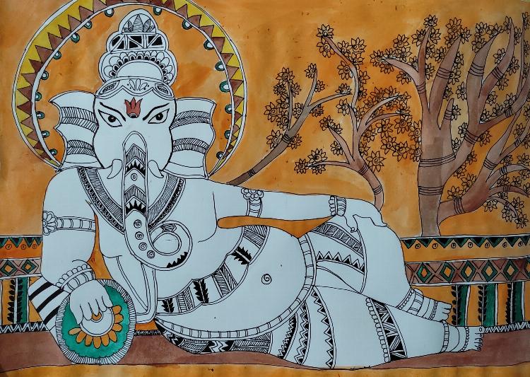 This is madhubani painting of Ganpati. Paper size- A4