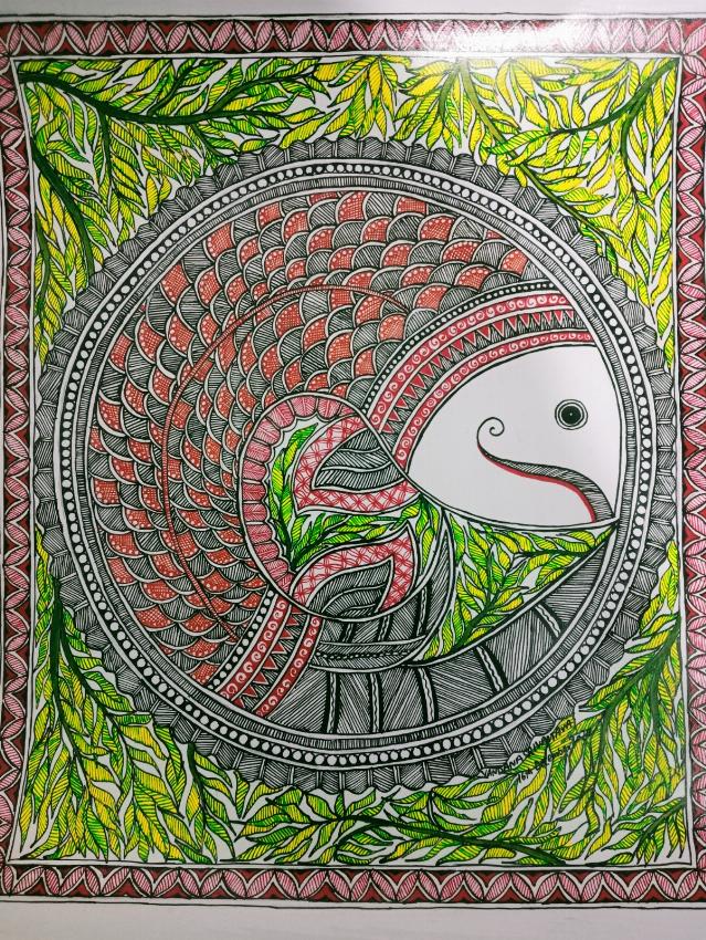 > Art > Handmade Madhubani Fish Painting