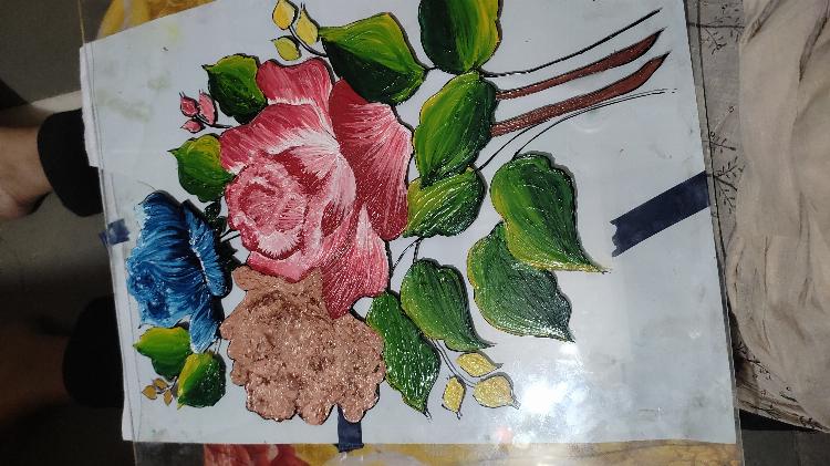 Galass painting Acrylic colour I can use for this painting This is the glass painting my one of the best flower design.