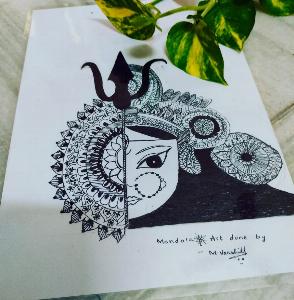 THIS IS A BEAUTIFUL AND MESMERIZING MANDALA ART OF DURGA MAA