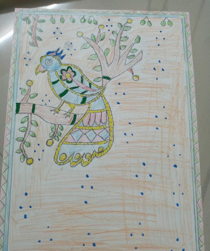 Madhubani Art with colour Pencils and Paint