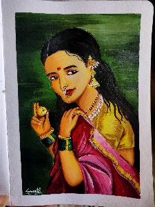 Indian woman potrait painting Done on - sketchbook Medium - aclyric painting