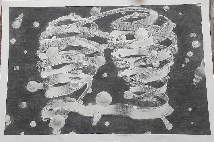 Faces of a man - charcoal painting