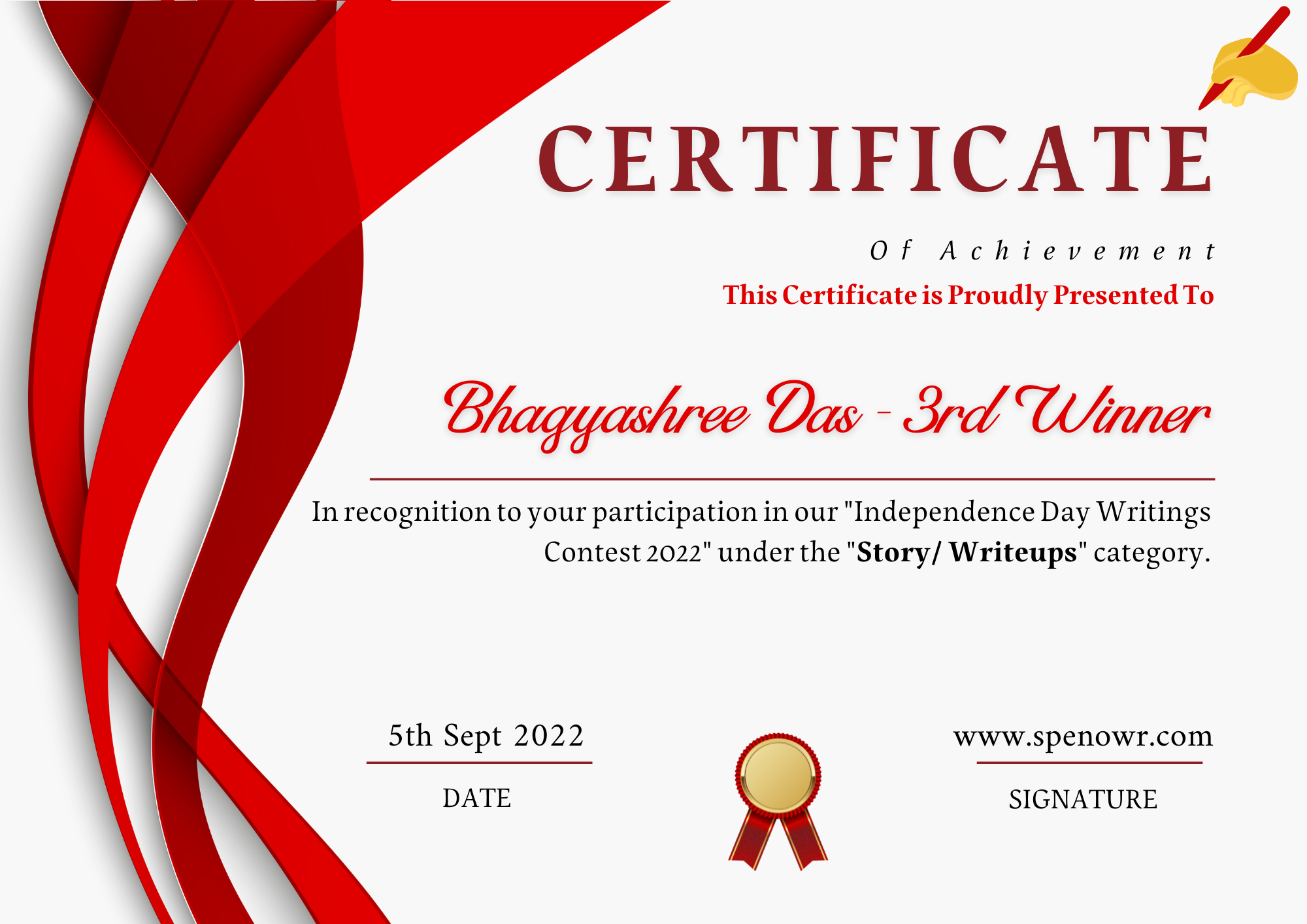 Wins 3rd position in the "Story/Writeups" category.