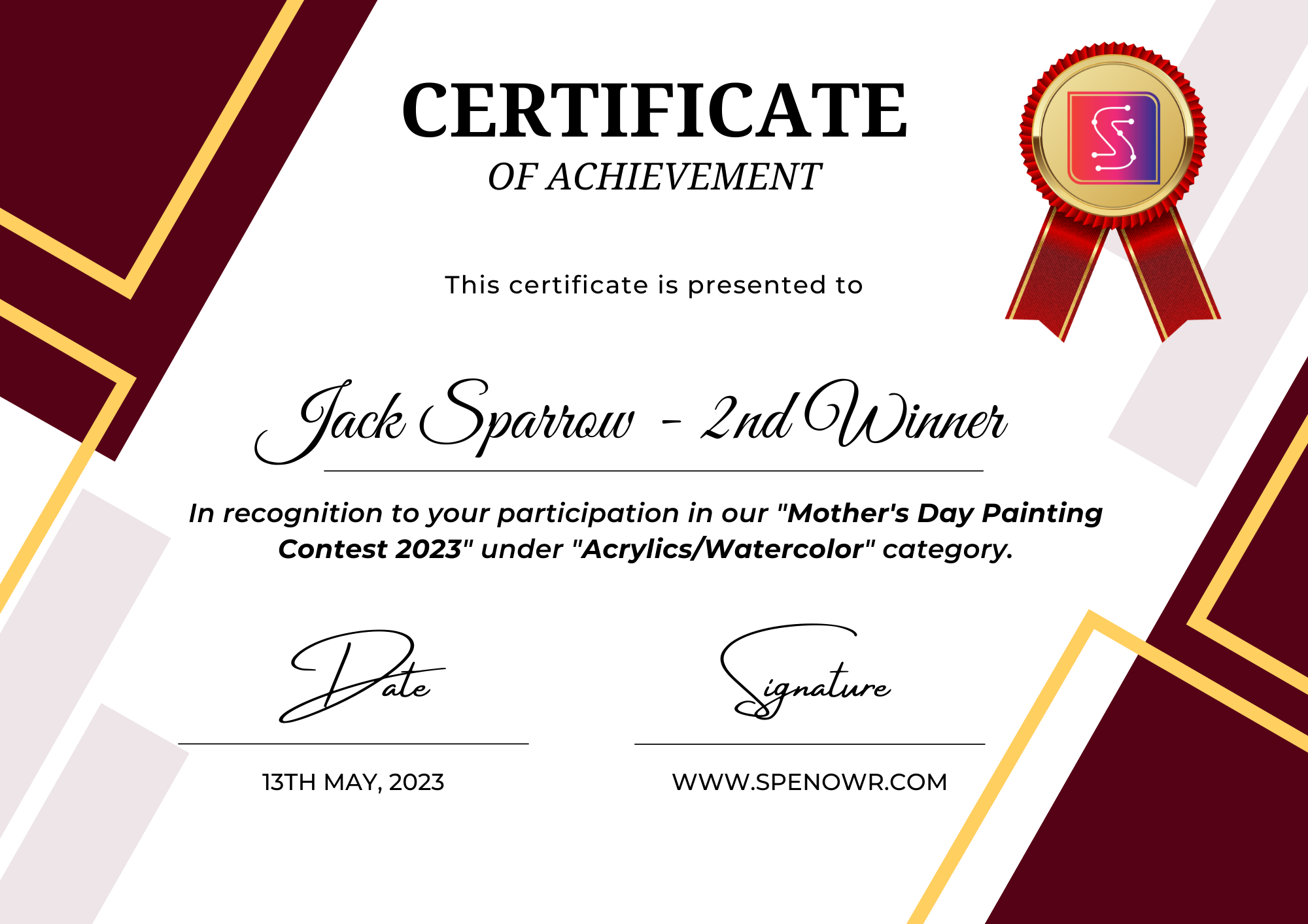 Wins 2nd position in the "Acrylics/Watercolor" category.
