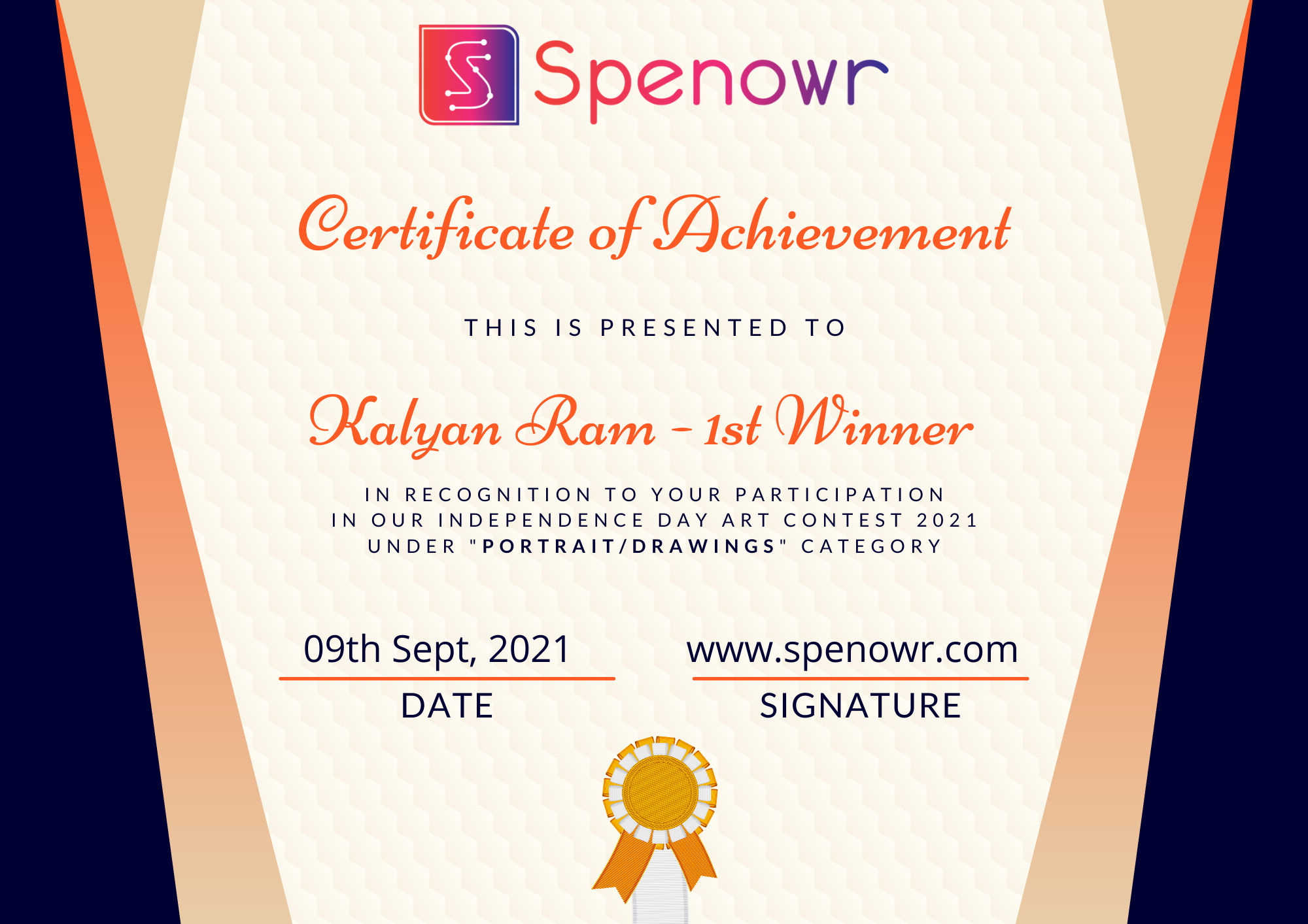 Wins 1st position in Portrait/Drawings category.