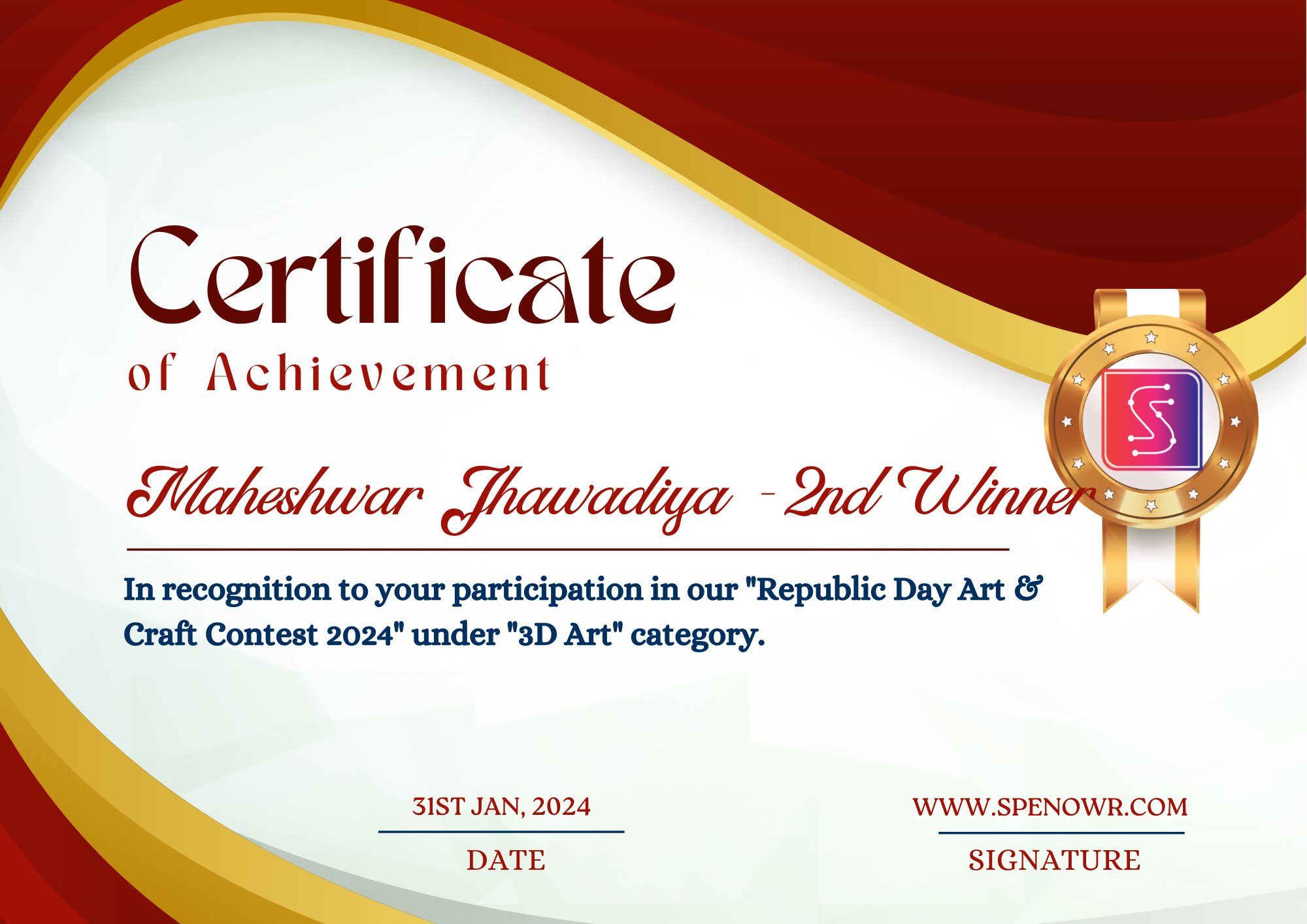 Wins 2nd position in the 3D Art category.