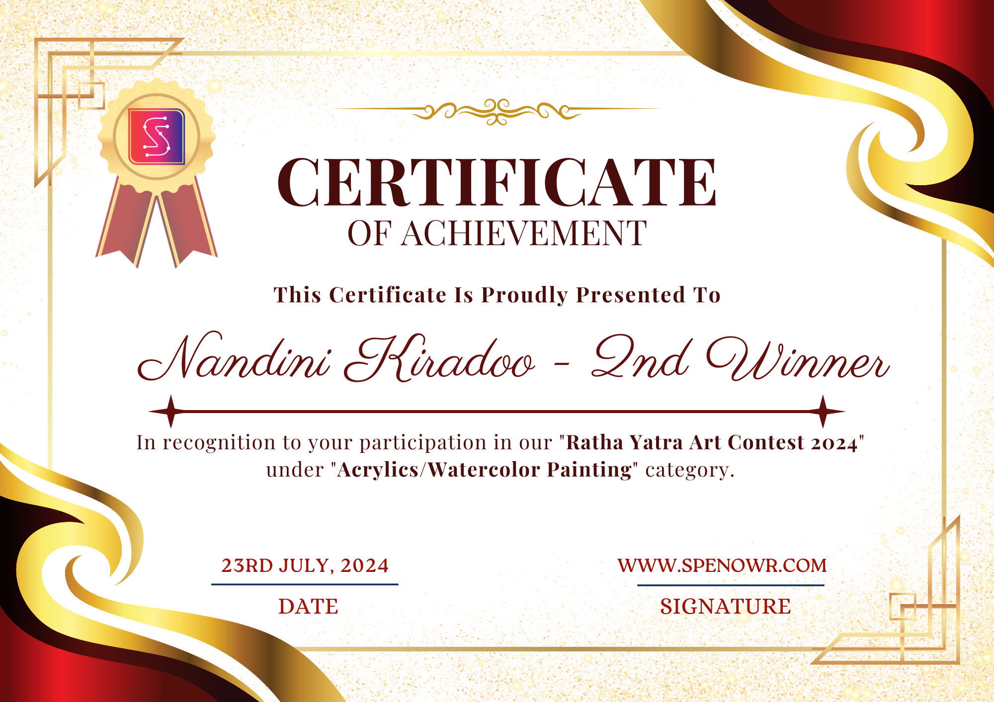 Wins 2nd position in the "Acrylics/Watercolor" category.
