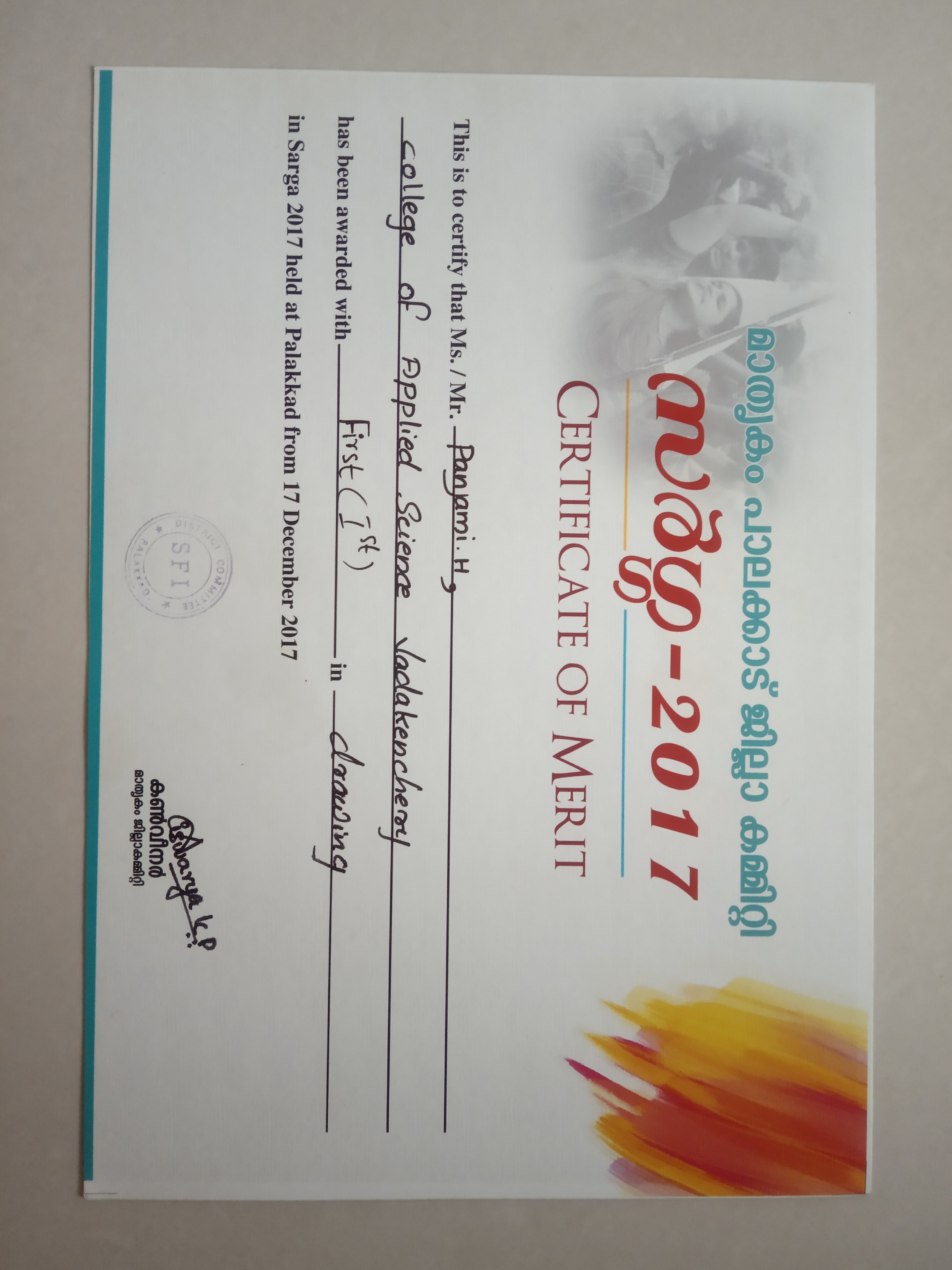 Issued By: Mathrugam palakkad district committee SARGA-2017
