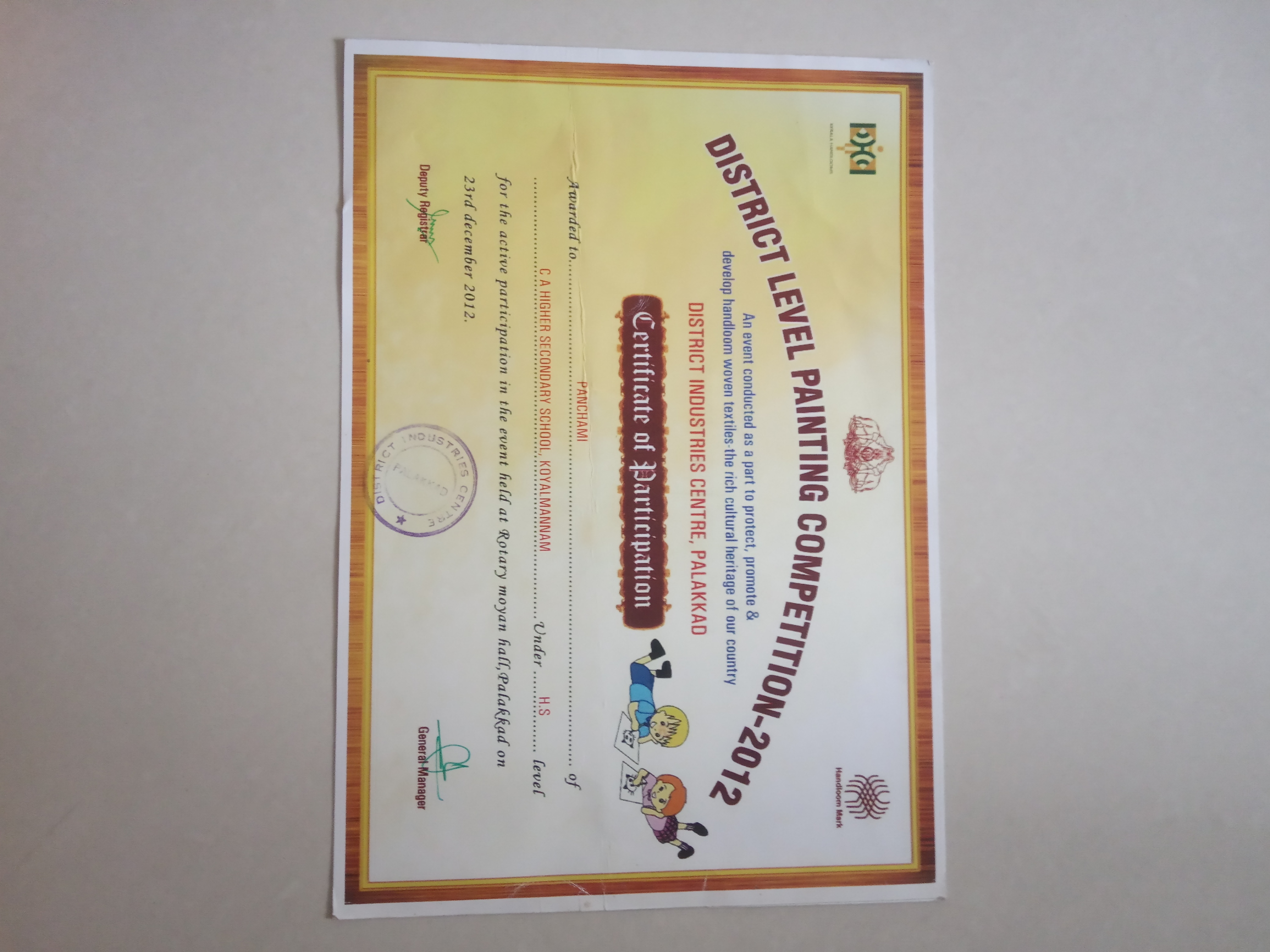 Issued By: District industries centre, palakkad