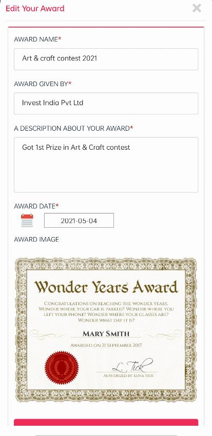 Note: If you don’t want to fill all the fields, just try to fill the mandatory fields (Red-stared), as without filling them you can’t add your award.