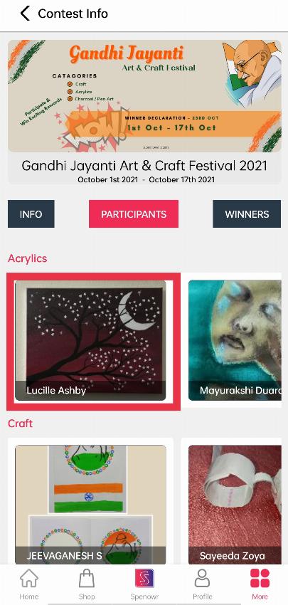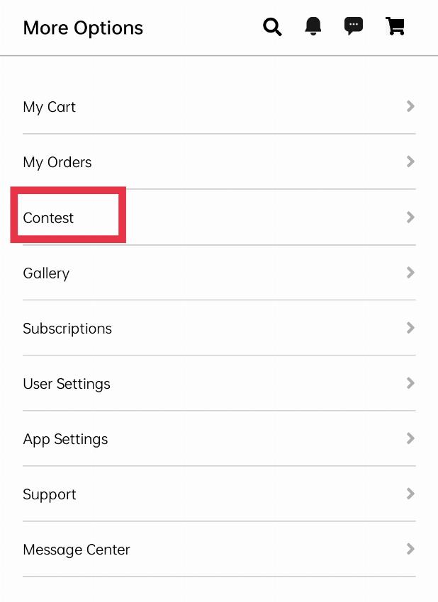 Click on the “MORE” button on the bottom bar to find out your recent contest details.