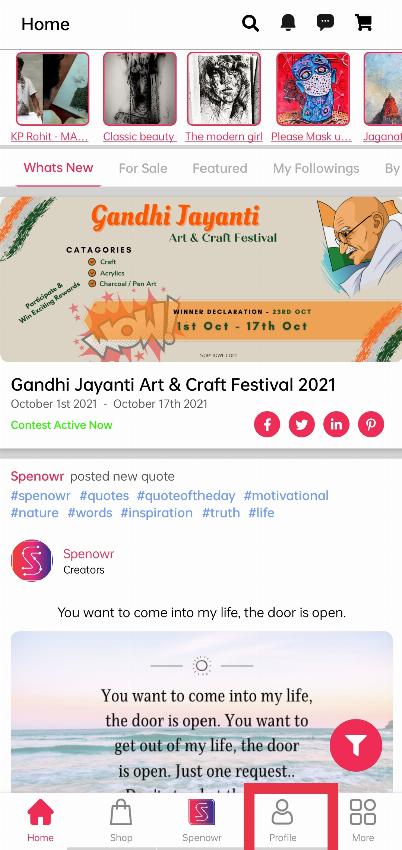 When you log in, you will see your home screen(What's new). Click on the ‘Profile’ option to see your profile.