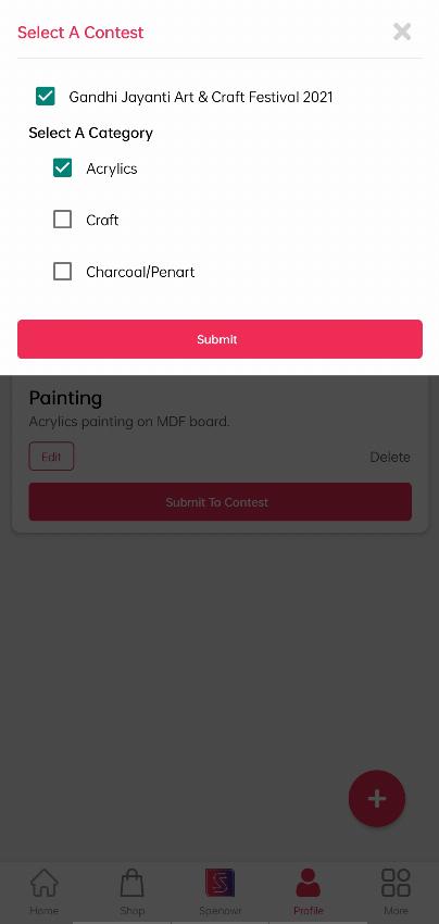 By clicking on the “Submit to contest” button you will see one popup window. Click the recent contest & choose your category.