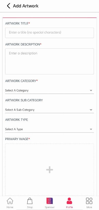 By clicking on ‘+’ you will find these empty fields, where you can add your artwork by adding the content and details about it.