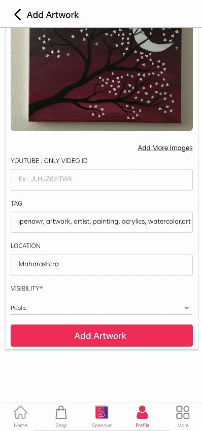 When you click on Profile, you will see your Profile, under that click the "Artwork" section(scroll down)to add your artworks.