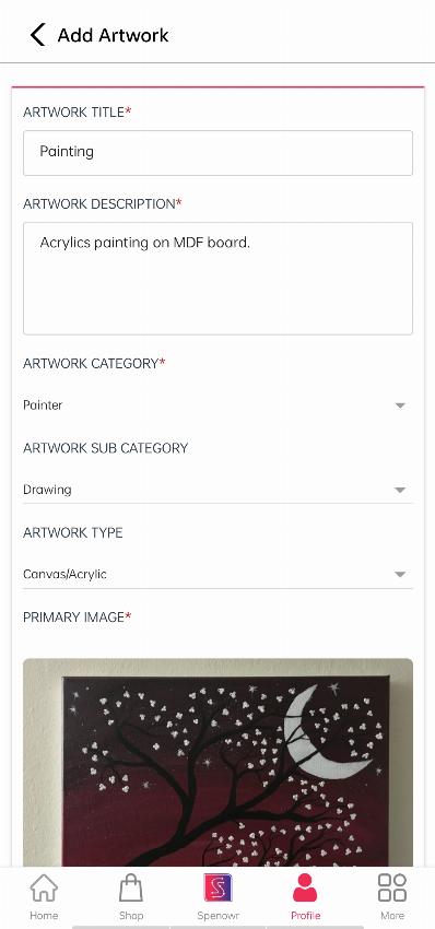 ARTWORK PRIMARY IMAGE: Put a good image that will be exaggerating your artwork, as it will be shown in the list page where your audience will click on this to open your product.