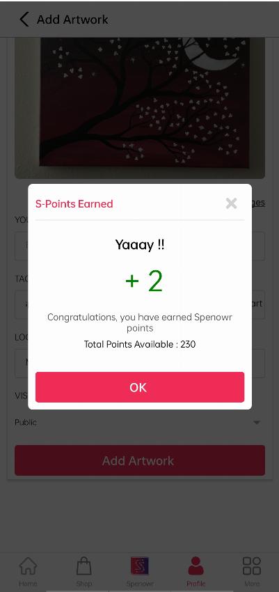 You will get some Spenowr points & by clicking on “OK’ your artwork listed here.