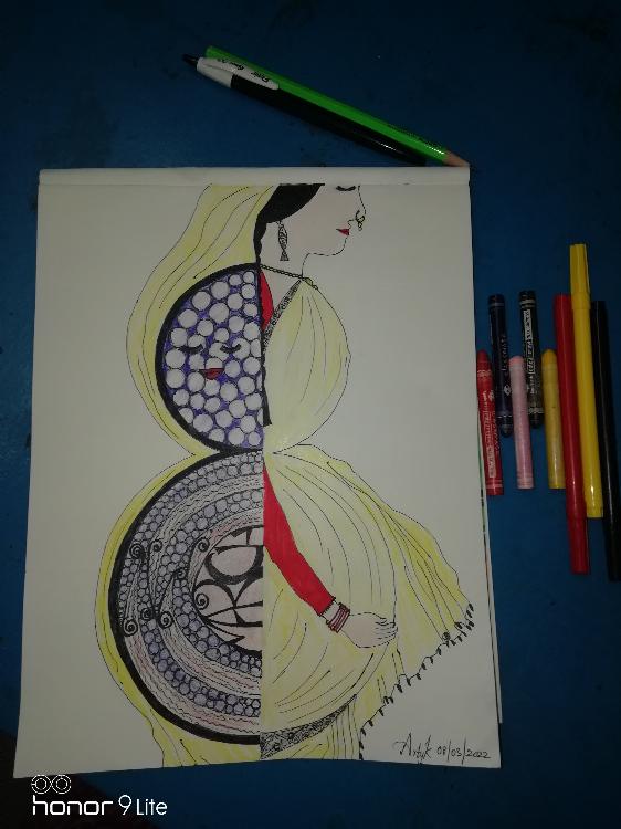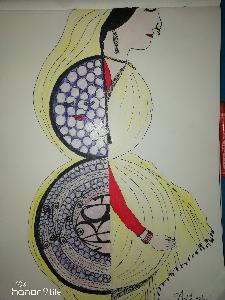 March 8 to May 8! A woman who was eight months pregnant on woman's day, March 8th marched towards motherhood and celebrated her first mother's day on May 8th! Becoming a mother is more of awakening an octopus within! That drives the theme in this piece of art.