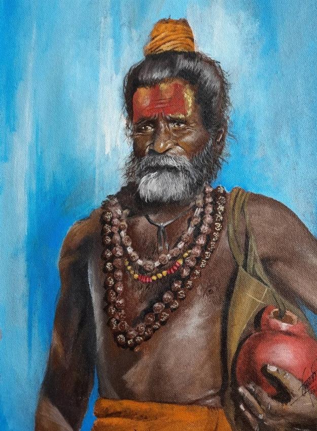 a3 sized acrylic portrait of a Nagasadhu This portrait is depicting culture of India and its heritage . We are blessed with a great tradition and this portrait is a tribute to it.
