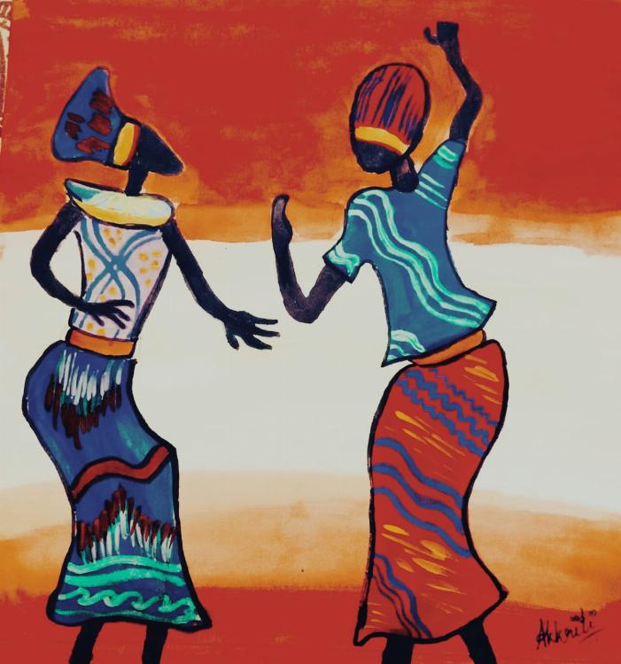 This is also an African tribal art in which two people dancing. I have used water colours to make this.