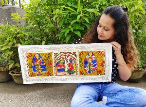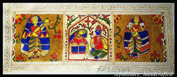 This artwork is inspired from an old wedding card. The style is Madhubani Art with some creative independence.