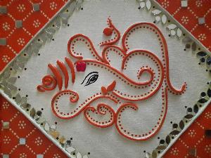 Ganesha In Lippan Art Orange - Art