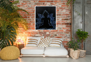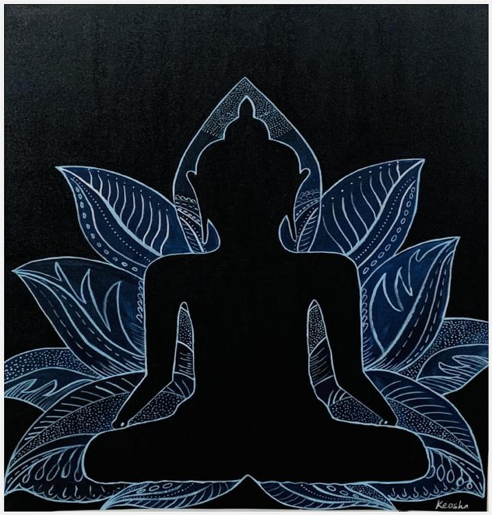 "Moksh" - Lets meditate 24inch by 30 inch work with acrylic on stretched canvas. Meditating Buddha with a beautiful floral background