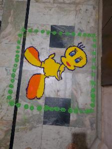 Artwork Rangoli is done by Jaksh Valiramani..he is 6 years.old.he has made tweety bird.