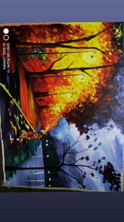 We use there knife work with acrylic colours.. This painting is done on36*48inch canvas...