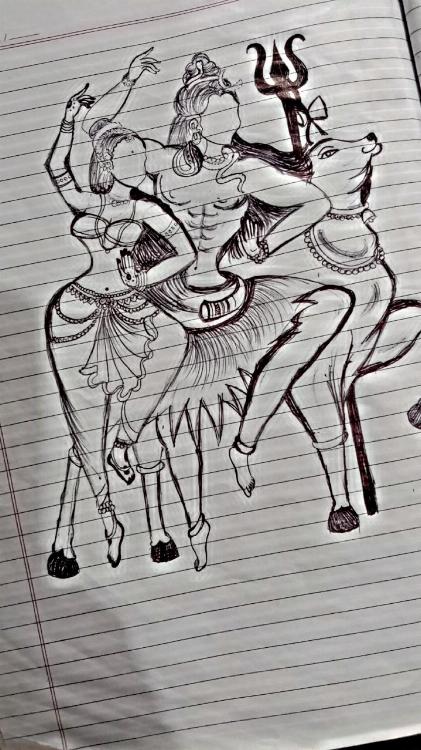 > Art > Mahadev Parvati Pen Drawing