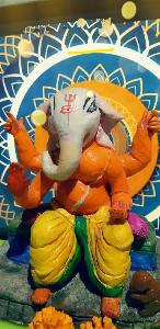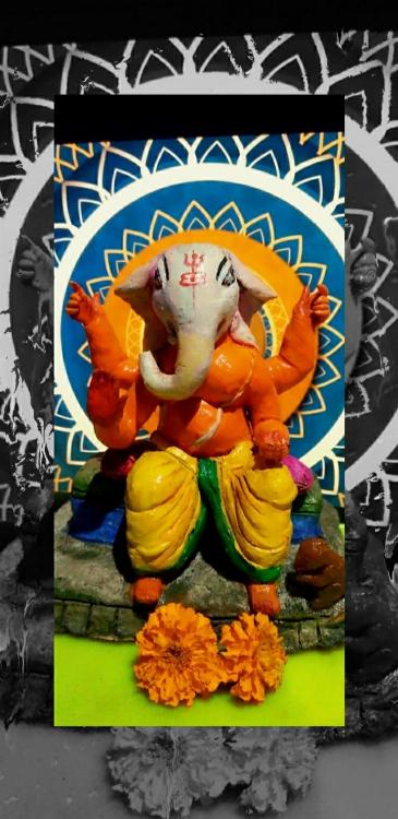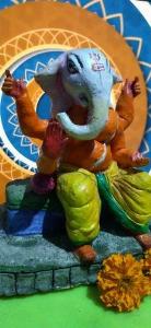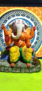 Ganpati sitting calm without much jewels. Made using potter's clay