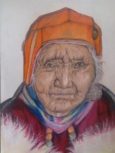 Pencils pastel portrait of old lady.