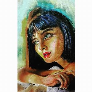 Its an acrylic portrait made on canvas highlighting the black beauty of a girl using mixture of colours.