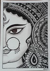 What better occassion to sketch the Mandala Art form of Maa Durga than this festive occasion of Dussehra. MANDALA ART WITH WHITE BACKGROUND AND REALISTIC SKETCHING.
