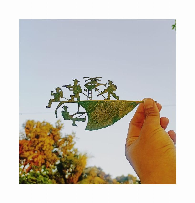 This is Leaf cutting art.. There is no any option for choice leaf art so i choice paper craft.. This art(crafts) dedicate to all the soldiers of our indian...