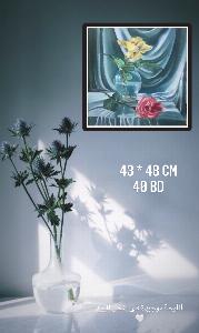 Beautiful harmony and communication between the two roses, as if they were talking about the smoothness and softness of the blue fabric in the color of the sea