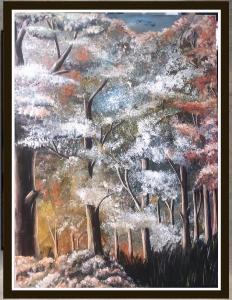 The colors of the painting express quiet dreams among a colorful forest that gives hope and a sense of calmness of the soul