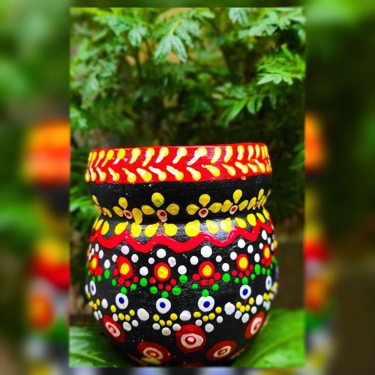 This mandala painting is made on the back of the brush of water color and oil color .