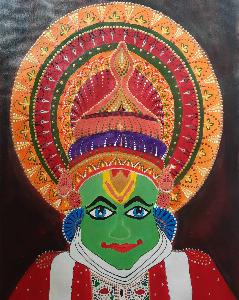 Title : Kathakali Mask Medium : Arcylic Painting, Dots Size : 16 * 12 Inches Country : India