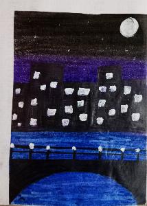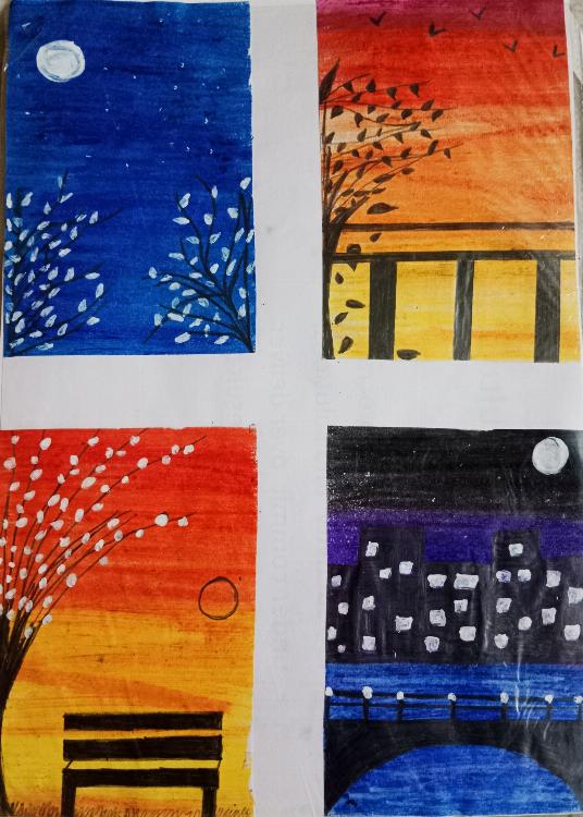 Here there are 4 different shades of sky,which reflects the beauty of nature. The sun ,moon ,trees add glow to view.