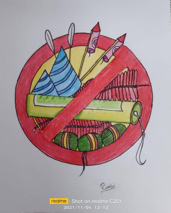 Say no to crackers . . . . . . . . . . . . . ____________________________ Material used:- Absara extra dark pencil Compass Scale Eraser Luxar marker EF pen Doms colour pencils ______________________________ Reference :- YouTube