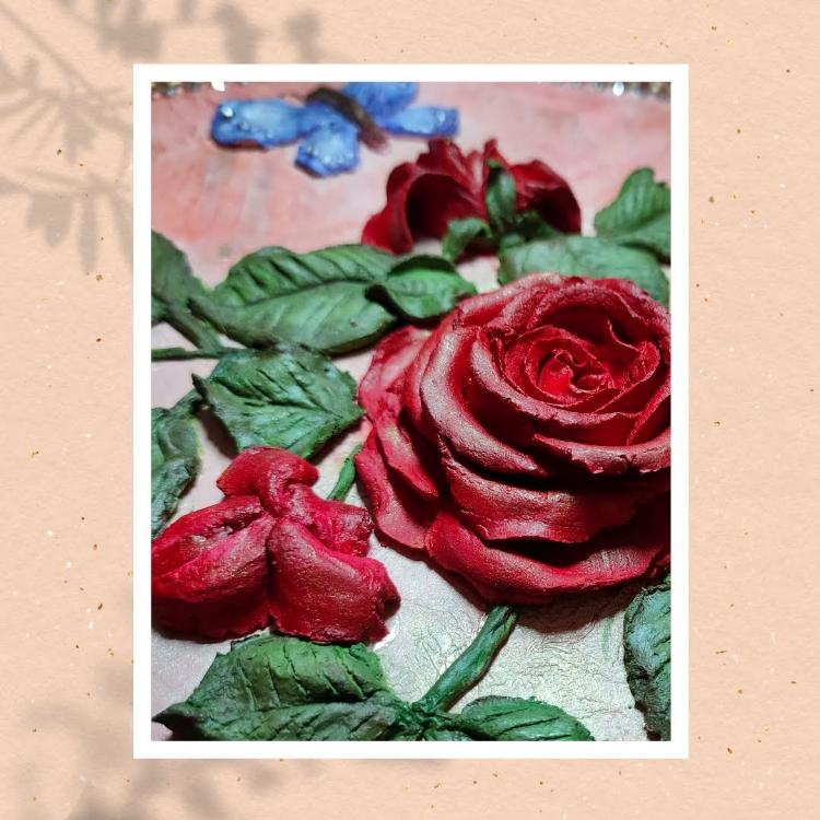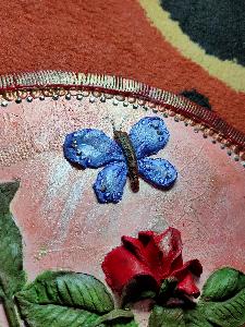 This artwork is made using sculpture paste (by Itsy bitsy) on 12'' circular MDF board. Base is primed and textured. Border is made from Shilpkaar clay to give it more pleasing look.