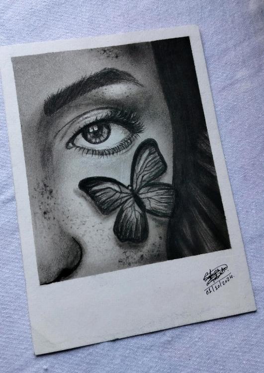 Realistic Charcoal Drawing, eye drawing, sketching, freehand drawing