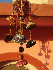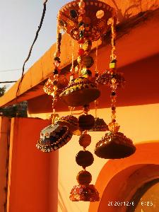 Wall hanging made up of old diyas