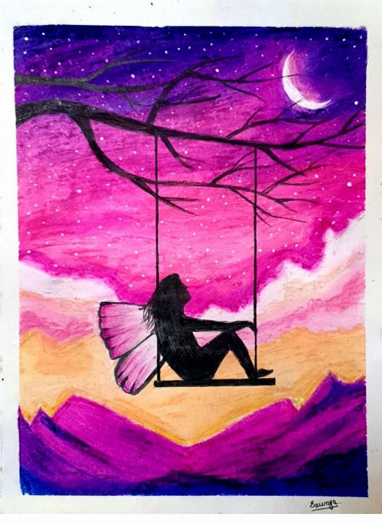 Some silent nights may give you Loud reasons to fly! A-3 Size oil pastel art