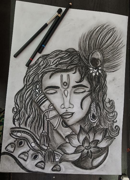 > Art > Lord Krishna Charcoal Art