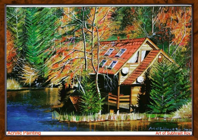 Acrylic Painting on Canvas Paper with Frame.
