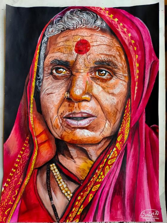 I have made a portrait of old women by using watercolors.